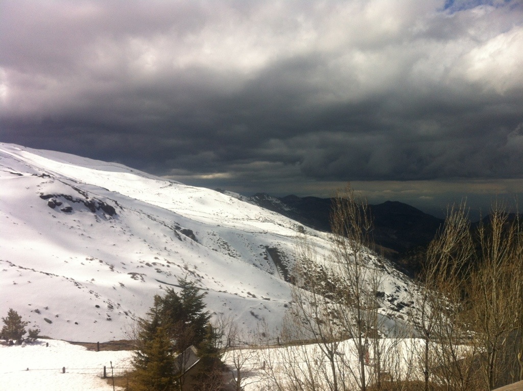 Vaknar upp i Sierra Nevada efter att ha sovit i en värdelös säng. Skönt sliten efter natten drar vi ner till frukosten för att sedan dra ut till pipen. nere vid frukosten får vi höra att en ny storm är på G in och att träning blir troligen inställd.