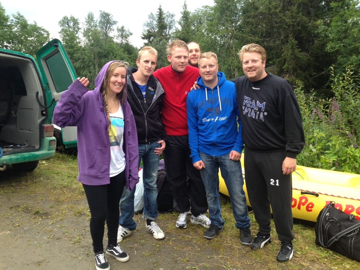 Här är vårt forsränningsteam som bestod av mig och brorsans kompisar. Jag skrattade konstant förutom när jag fick allt vatten över mig haha