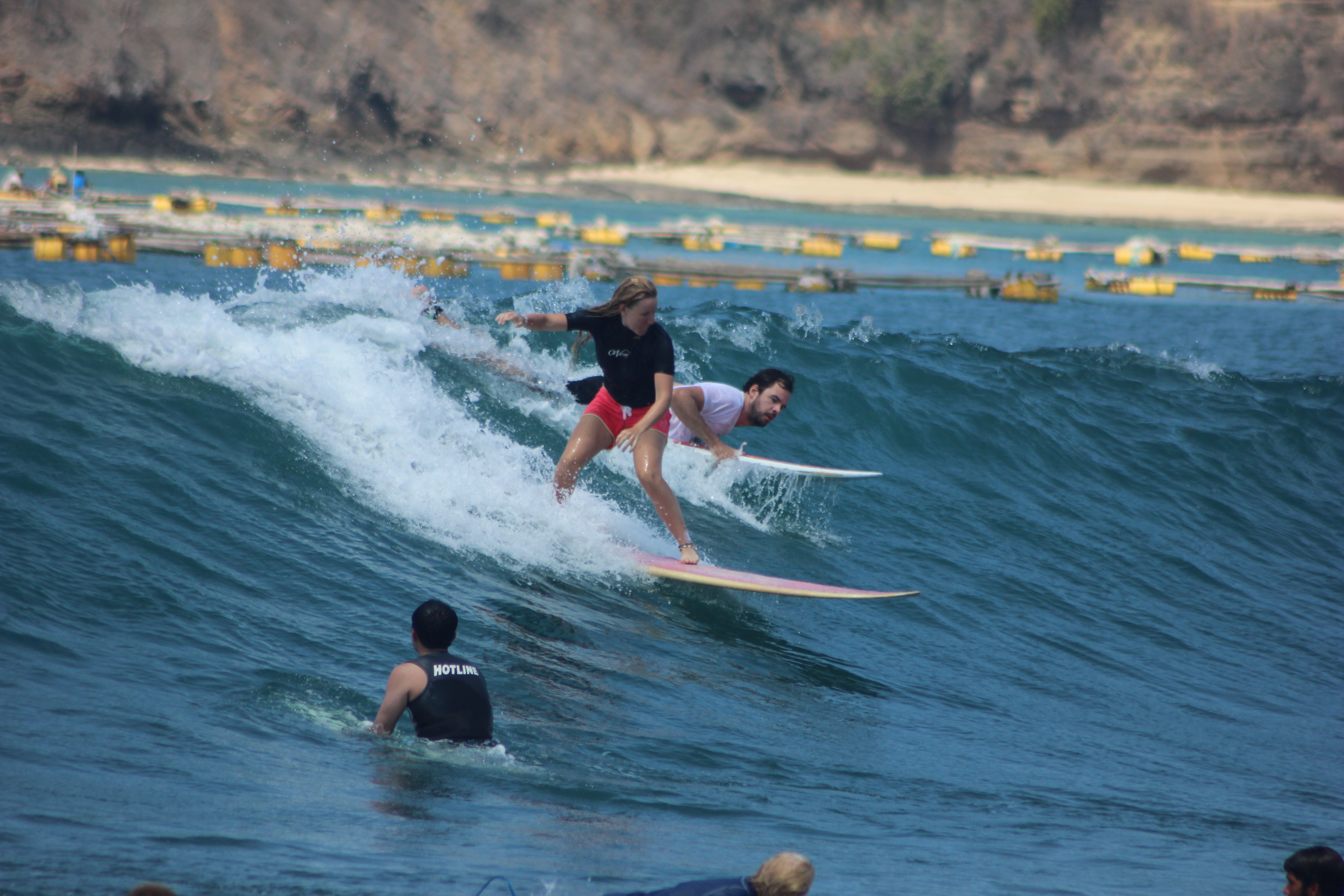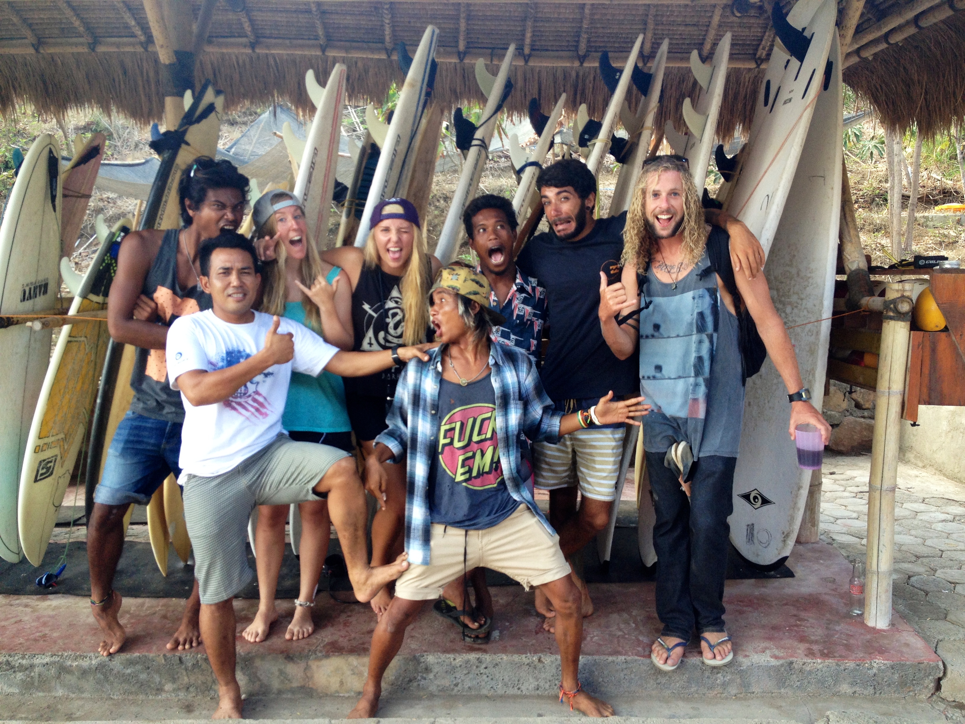 One of my favorite pictures from Indo, it’s me, Simone and our coaches on the surf camp at Lombok, Indonesia. 😀